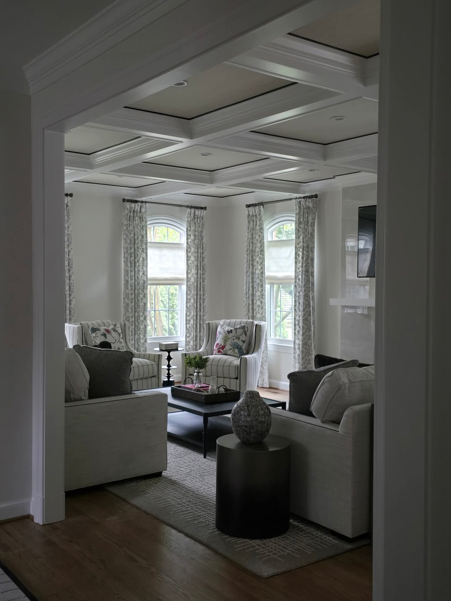 Coffered ceilings? Added, and with black etching too, because blank ceilings are for people who still eat over the sink.